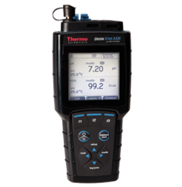 Thermo Scientific Orion Star A326 便携式 pH、DO 和 RDO 测量仪适用于各类 pH、mV、ORP、溶解氧和温度检测及野外应用。使用这款配备 IP67 级外壳的防水型测量仪,可在严苛的地点对样品进行评价。使用双通道测量仪同时测定 pH 值和溶解氧或单独查看每条通道。可记录多达 5000 个带有时间/日期标记戳的数据点集,还可通过 USB 或 RS232 轻松传送校准和数据日志至打印机或计算机。