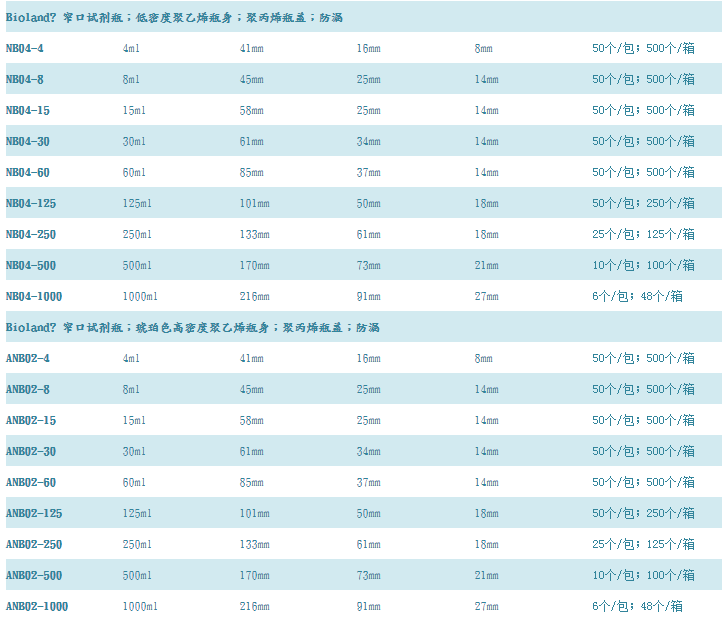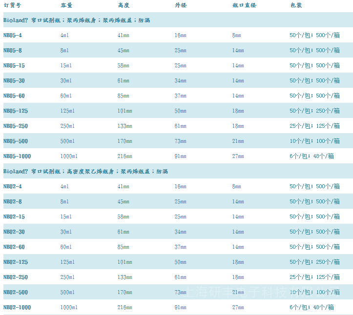 Bioland贝兰伯 实验室 窄口试剂瓶全型号
