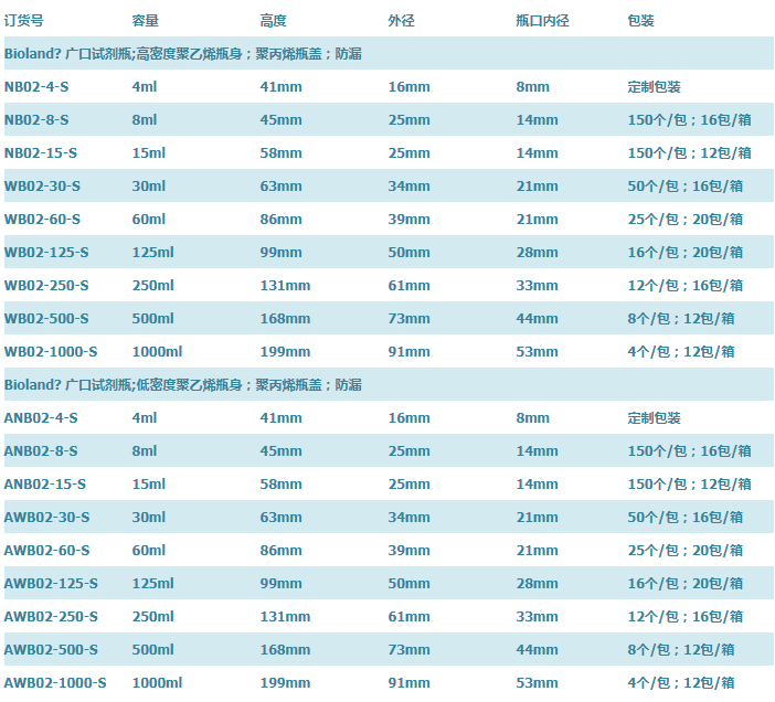 > Bioland贝兰伯 实验室 诊断包装瓶全型号