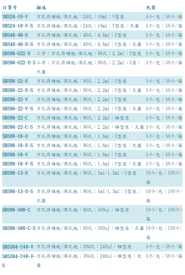 -     Bioland贝兰伯 实验室 方孔存储板/深孔板全型号详细信息品牌:Bioland 型号:全型号 加工定制:否 规格:- 外形尺寸:- mm 重量:- kg 材质:- 包装数量:- Bioland 贝兰伯 实验室 方孔存储板/深孔板产品描述